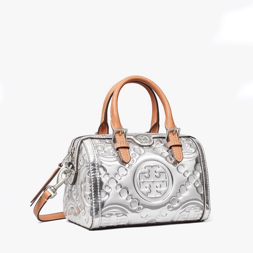 【送料0/国内即発】トリー バーチTモノグラムミニエンボスメタルシャイニーバケットバッグ