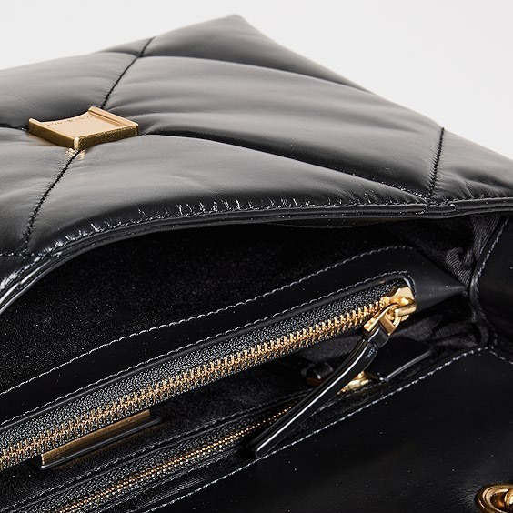 アンティークゴールドトーンのハードウェアとロゴエンブレム